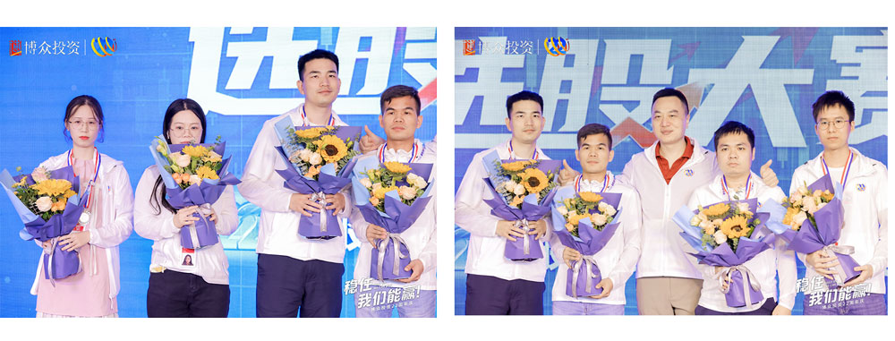 下一項則是選股大賽頒獎儀式,首先頒發的是銅獎獲得者,他們是陳紅董、梁世昌、黃建強、容偉彪、宋文皓、韋蘭忠、程琪、明振友、鄒小翠,由易米的劉總為9為獲獎者進行頒獎以及合影留念。緊接著頒發銀牌獲獎者,他們是:陳燦、陳威、張偉秋、勞志炳、謝俊。繼續由易米的劉總為4位獲獎者進行頒獎以及合影留念。
